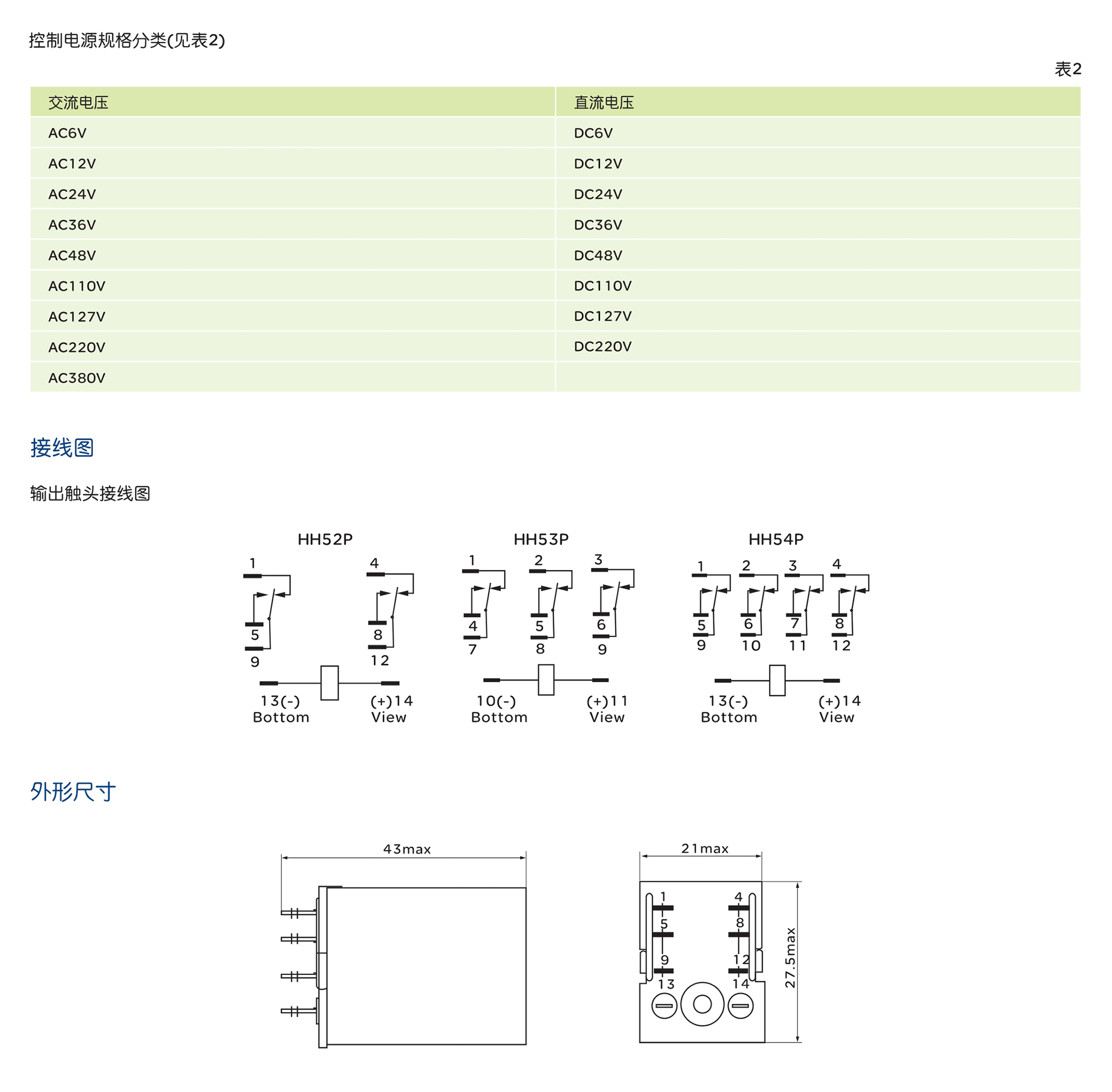 > HH52P、53P、54P 系列小型電磁繼電器