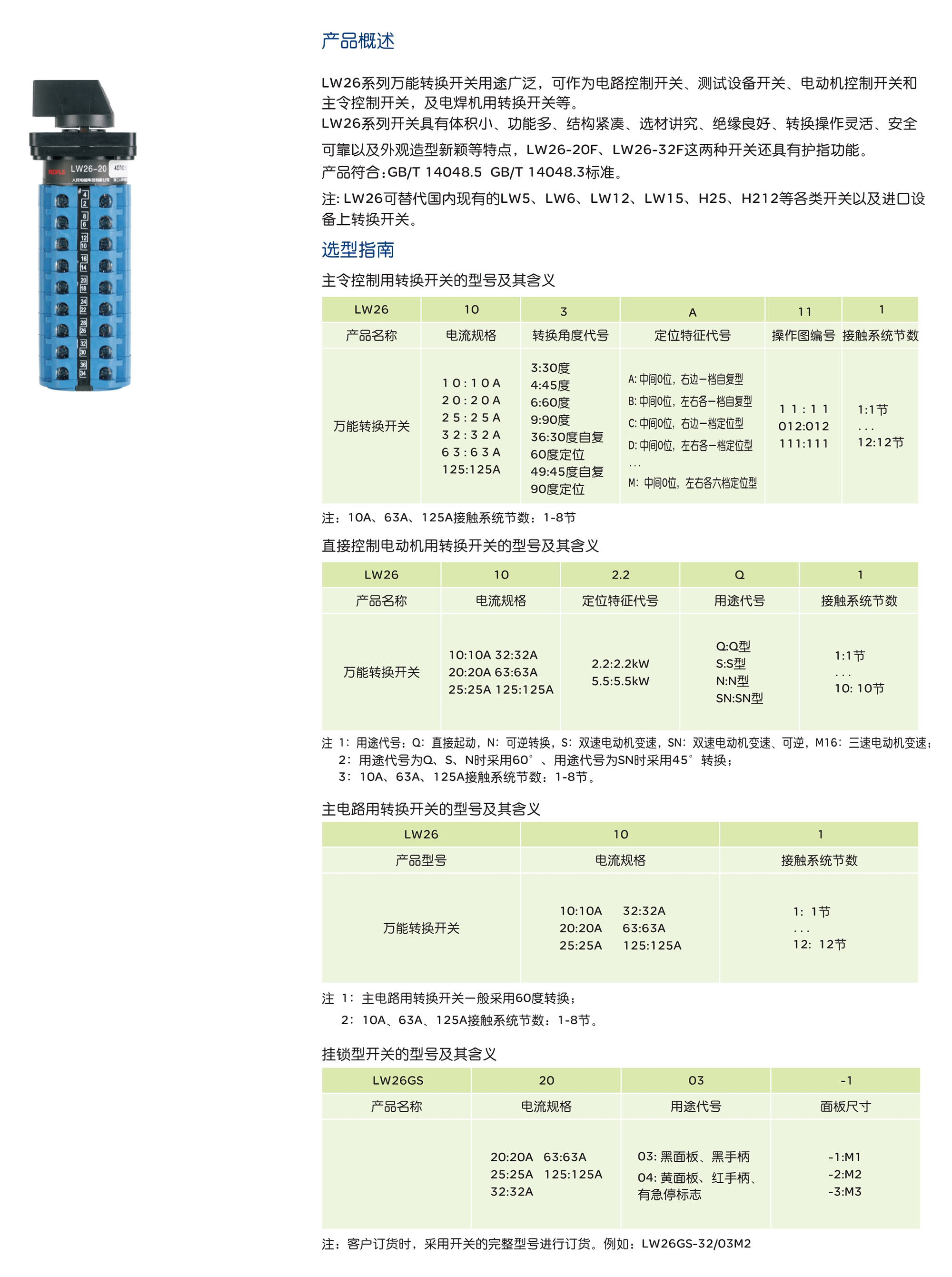 注:LW26可替代國(guó)內(nèi)現(xiàn)有的LW5、LW6、LW12、LW15、H25、H212等各類開關(guān)以及進(jìn)口設(shè)備上轉(zhuǎn)換開關(guān)。