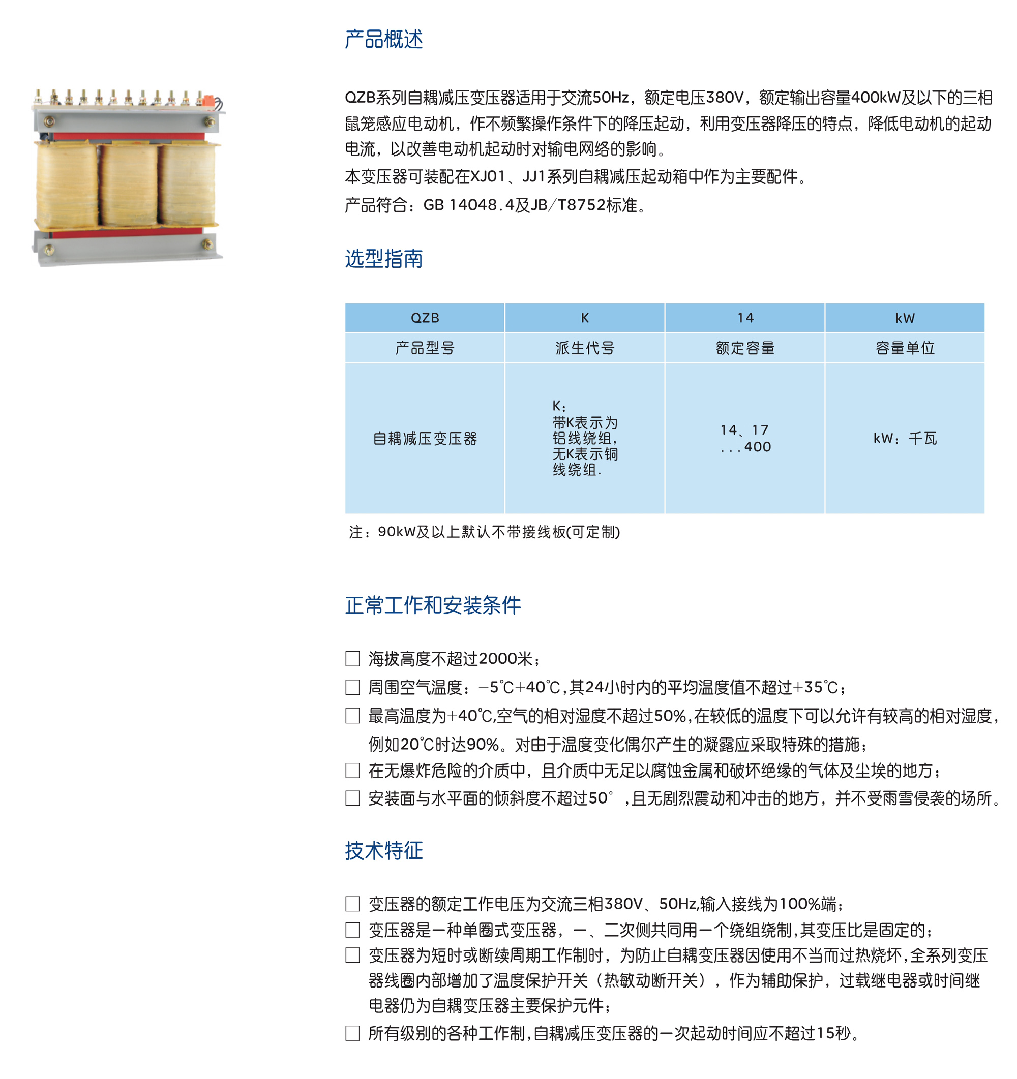 QZB系列自耦減壓變壓器