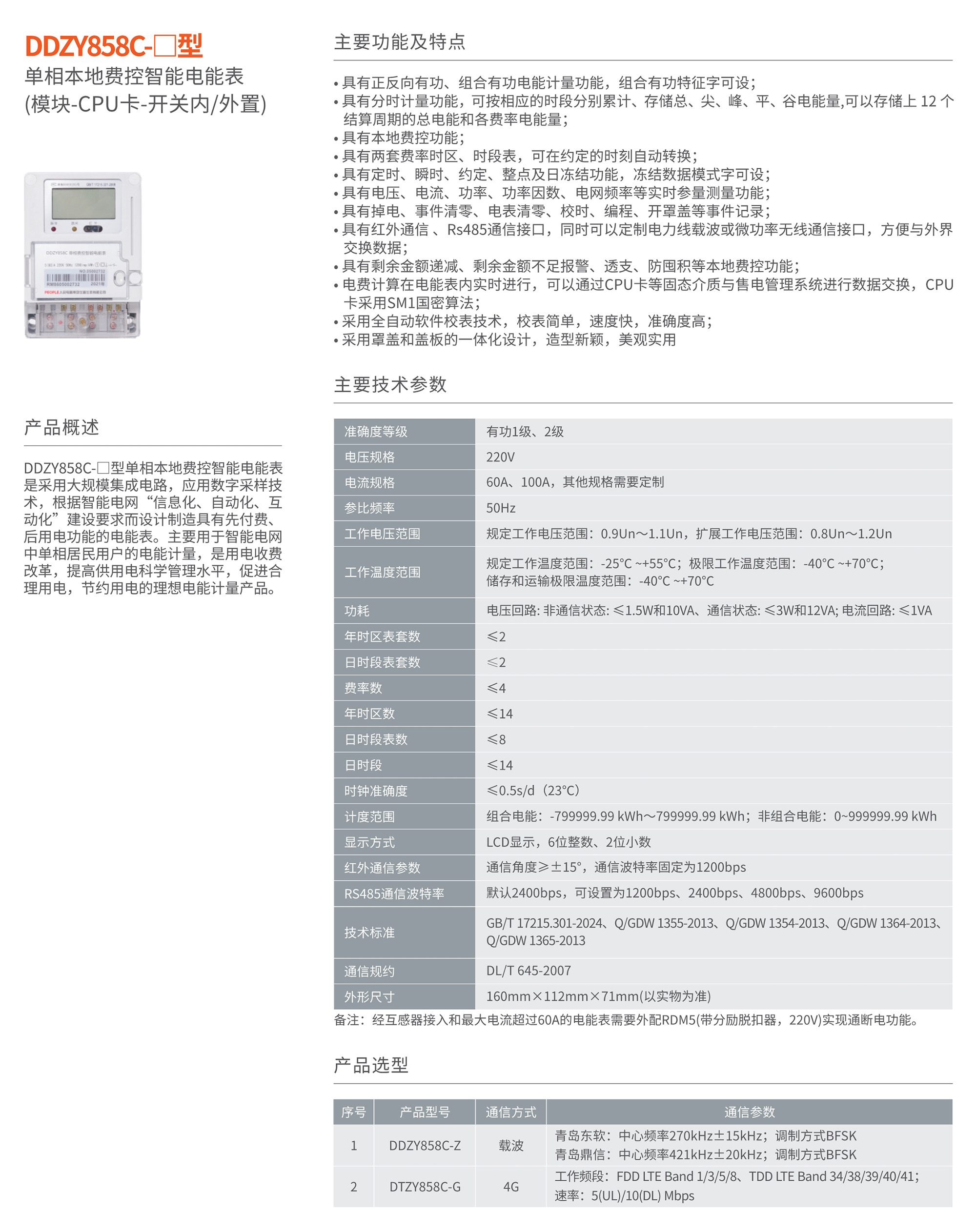 > DDZY858C-Z/DDZY858C-G型單相本地費控智能電能表