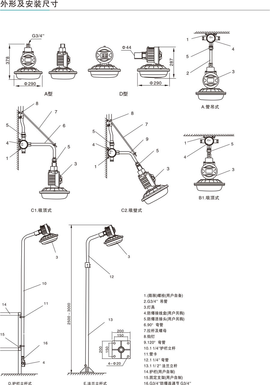 適用于ⅡA、ⅡB、ⅡC類(lèi)含有爆炸性氣體環(huán)境,溫度組別為T(mén)1-T6的1區(qū)、2區(qū)室內(nèi)外危險(xiǎn)場(chǎng)氣或21區(qū)、22區(qū)爆炸性場(chǎng)所室內(nèi)外照明。