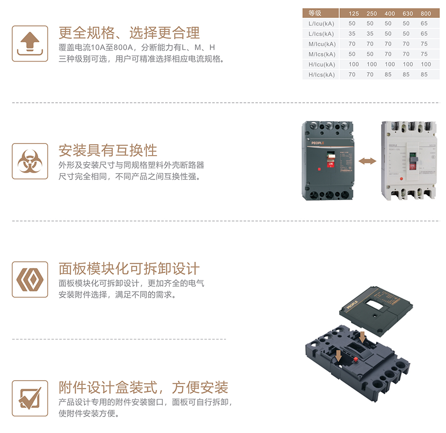 RDM7系列塑料外殼式斷路器適用于交流50Hz,額定絕緣電壓1000V,額定工作電壓690V及以下, 額定電流至800A以下的配電網(wǎng)絡中, 用來分配電能和保護線路及電源設備免受過載, 短路和欠電壓等故障的損壞。其中額定電流630A及以下的斷路器;亦可作為保護電動機之用。在正常情況下, 斷路器可分別作為線路的不頻繁轉換及電動機的不頻繁起動之用。配電用斷路器,在配電網(wǎng)絡中用來分配用電能且作為線路及電源設備的過載、短路和欠電壓保護。保護電動機用斷路器,在配電網(wǎng)絡中用作鼠籠型電動機的起動和運轉...