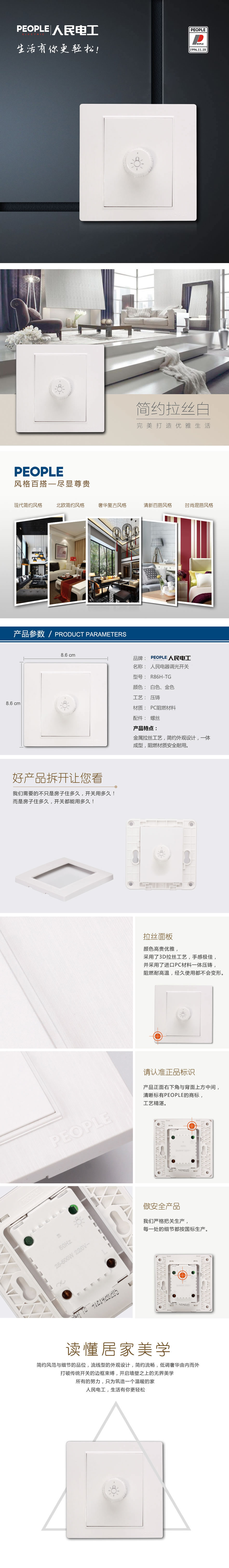 型號(hào):R86H-TG 調(diào)光開(kāi)關(guān);顏色:白色、金色