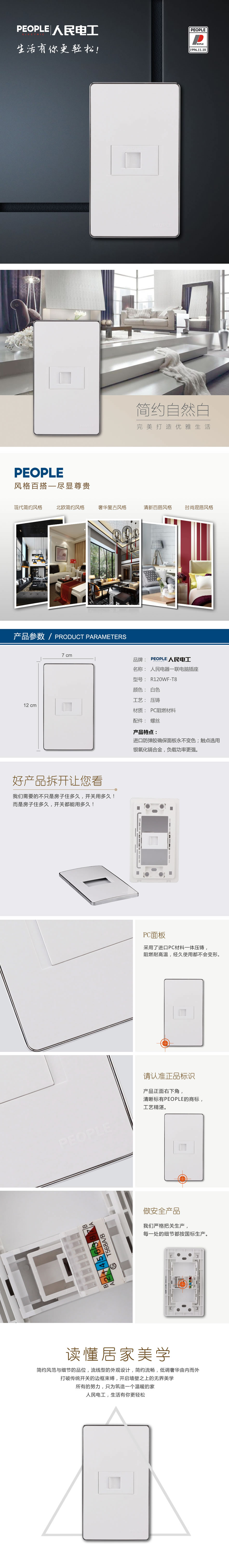 型號(hào):R120WF-T8 一聯(lián)電腦插座;顏色:白色