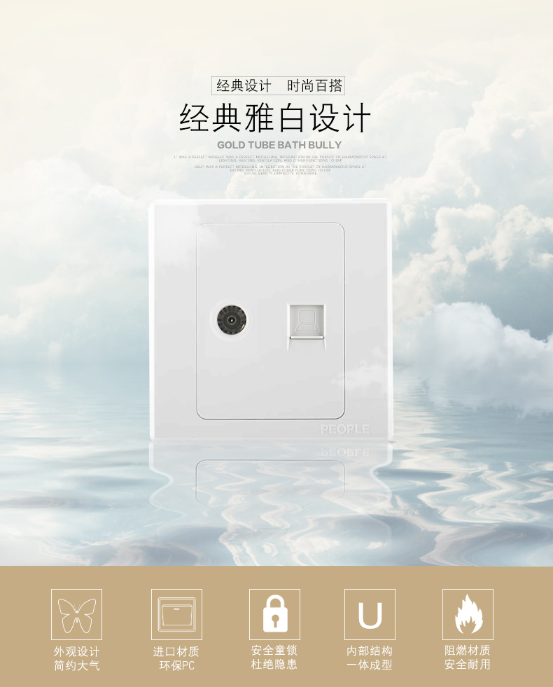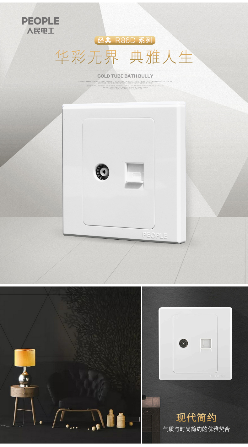 型號(hào):R86D-TVT2(二芯電話)、R86D-TVT8(電腦) 電視電腦插座;顏色:乳白