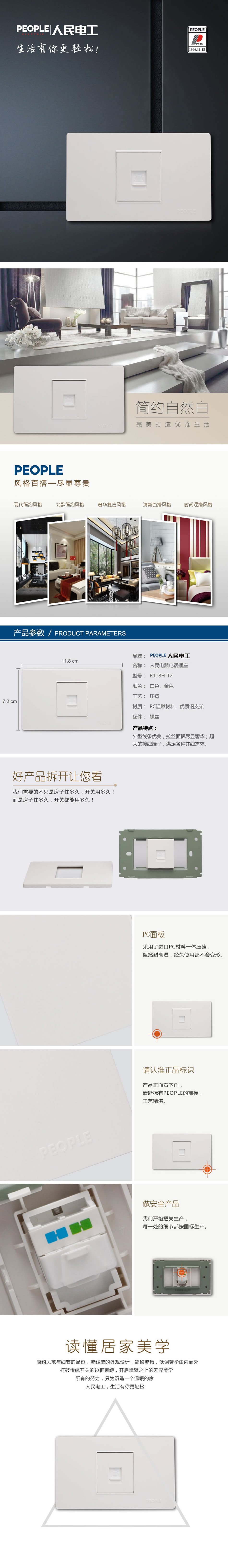 型號:R118H-T2 一聯(lián)電話插座;顏色:白色,金色