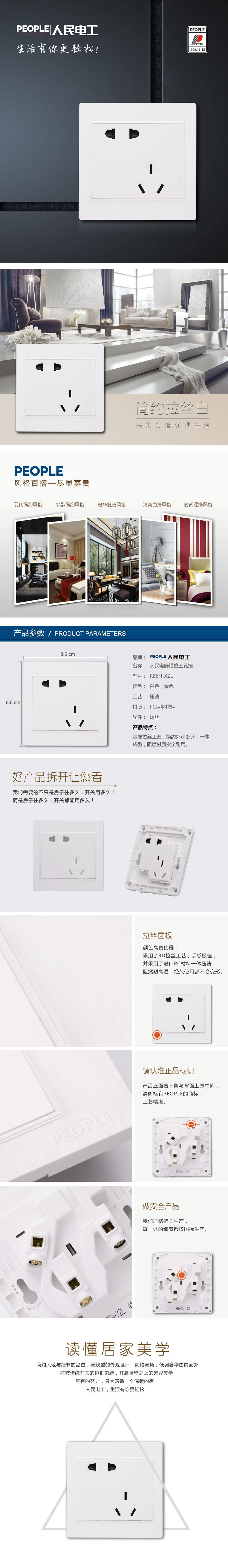 型號:R86H-XZL 錯位五孔插;顏色:白色、金色