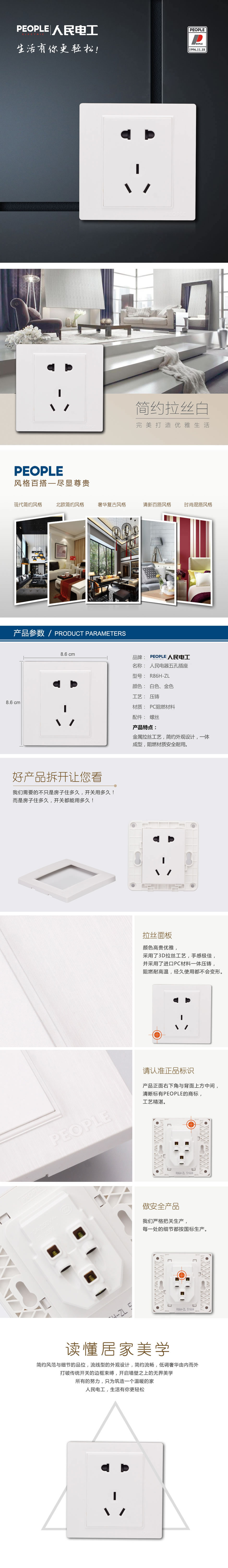 型號(hào):R86H-ZL 五孔插座;顏色:白色、金色