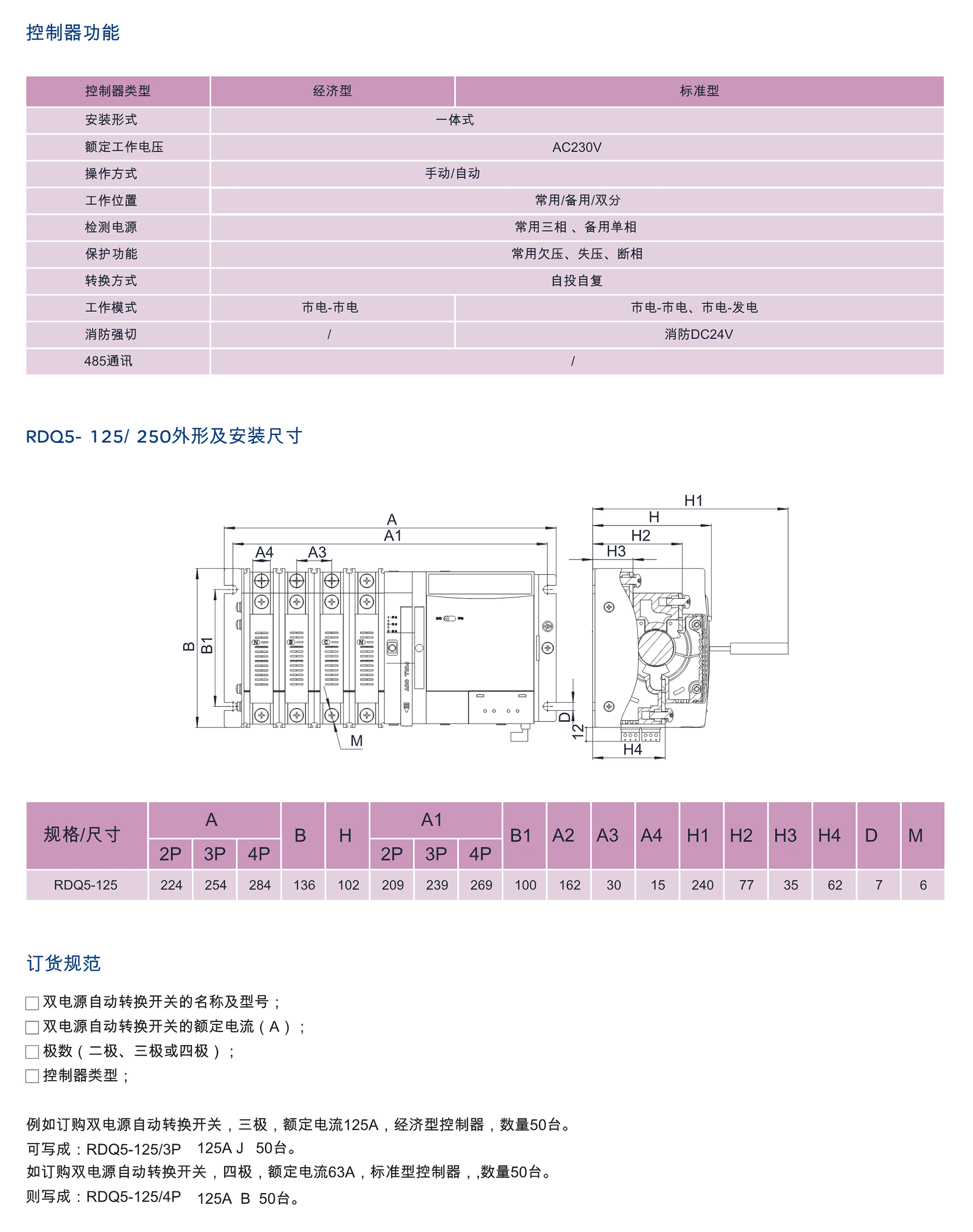 RDQ5系列雙電源自動轉換開關(以下簡稱雙電源),它適用于交流50Hz、額定工作電壓400V、額定工作電流125A及以下的供電系統(tǒng)。可根據(jù)需求或具體電路情況進行兩路電源之間的切換選擇。本產(chǎn)品具有過壓、欠壓、缺相保護功能,同時還具備消防、雙分和輸出合閘信號功能。產(chǎn)品適用于高層樓宇、商場、銀行、醫(yī)療衛(wèi)生等不允許停電的重要場所。