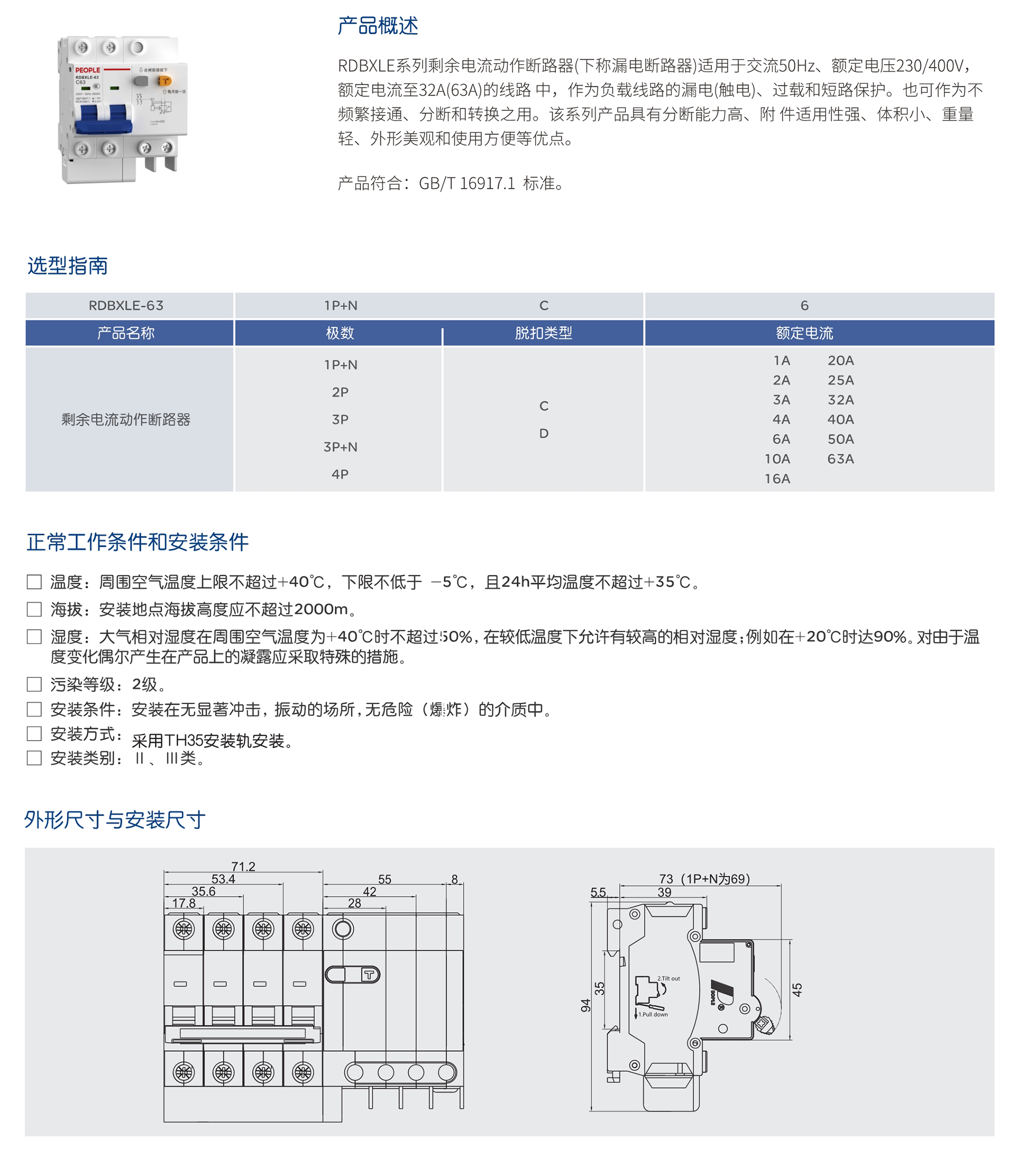 RDBXLE系列剩余電流動作斷路器(下稱漏電斷路器)適用于交流50Hz、額定電壓230/400V,額定電流至32A(63A)的線路 中,作為負載線路的漏電(觸電)、過載和短路保護。也可作為不頻繁接通、分?jǐn)嗪娃D(zhuǎn)換之用。該系列產(chǎn)品具有分?jǐn)嗄芰Ω?、?件適用性強、體積小、重量輕、外形美觀和使用方便等優(yōu)點。
