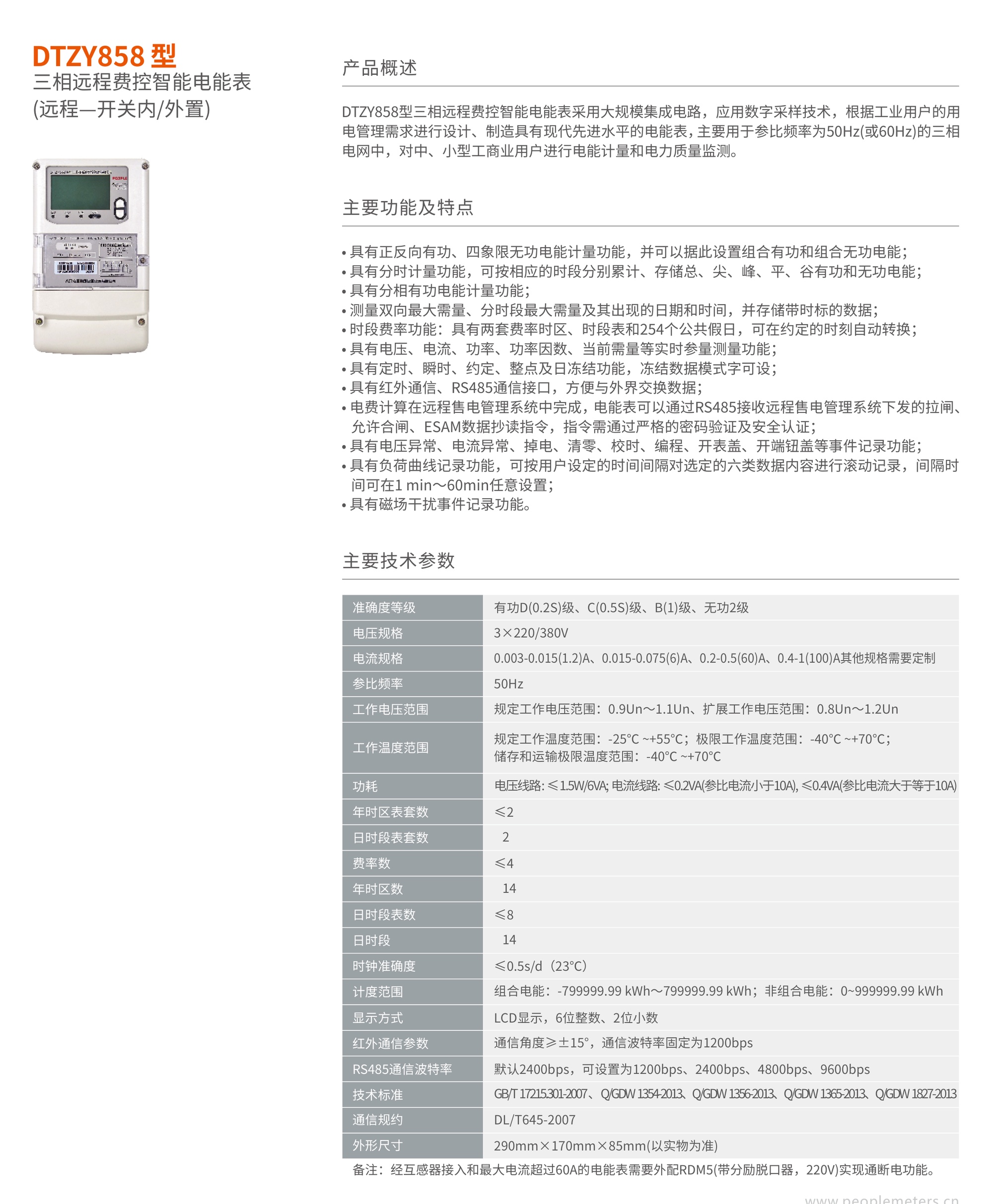 DTZY858型三相遠(yuǎn)程費(fèi)控智能電能表采用大規(guī)模集成電路,應(yīng)用數(shù)字采樣技術(shù),根據(jù)工業(yè)用戶的用電管理需求進(jìn)行設(shè)計(jì)、制造具有現(xiàn)代先進(jìn)水平的電能表,主要用于參比頻率為50Hz(或60Hz)的三相電網(wǎng)中,對(duì)中、小型工商業(yè)用戶進(jìn)行電能計(jì)量和電力質(zhì)量監(jiān)測(cè)。