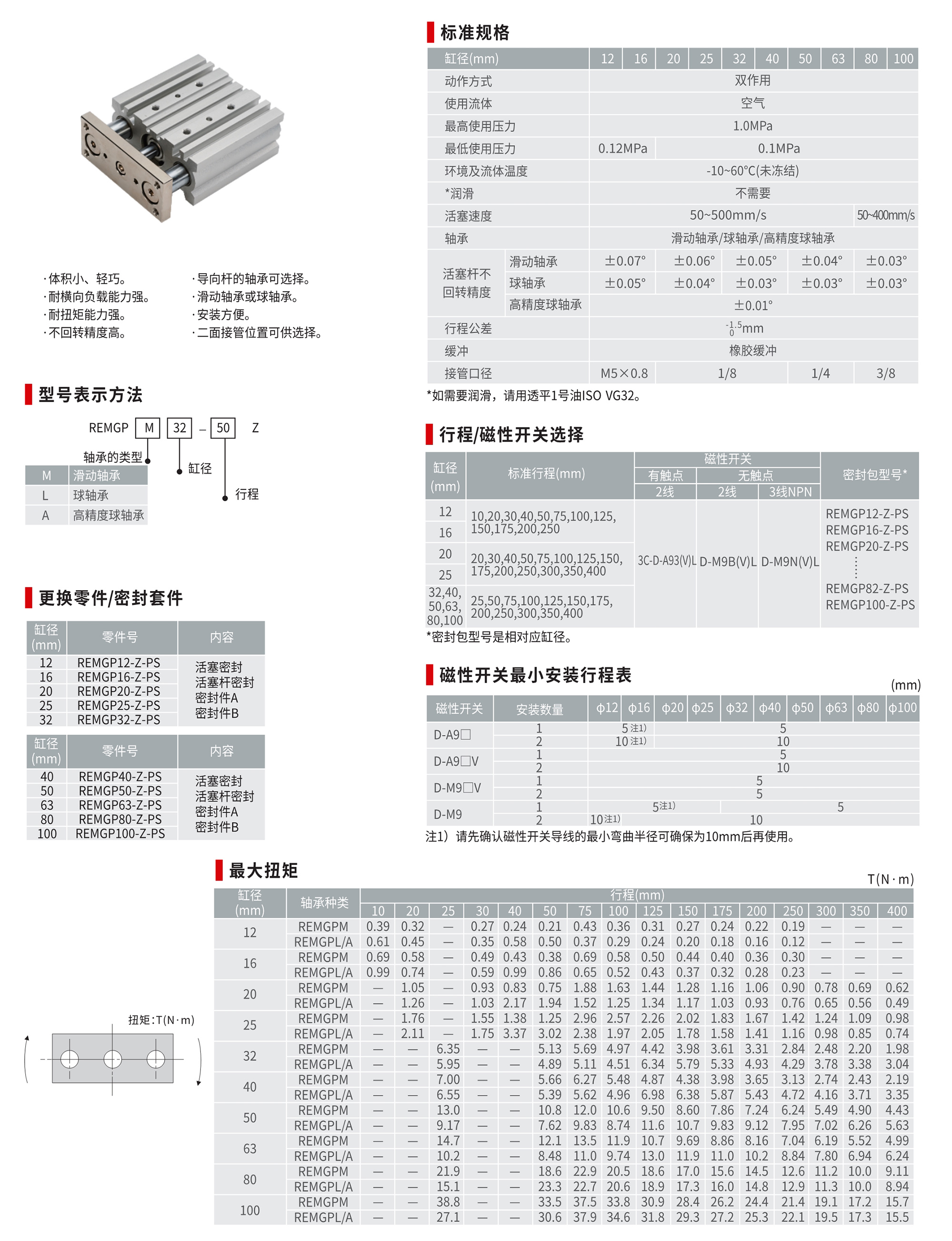 > REMGPM/REMGPL系列新薄型帶導(dǎo)桿氣缸