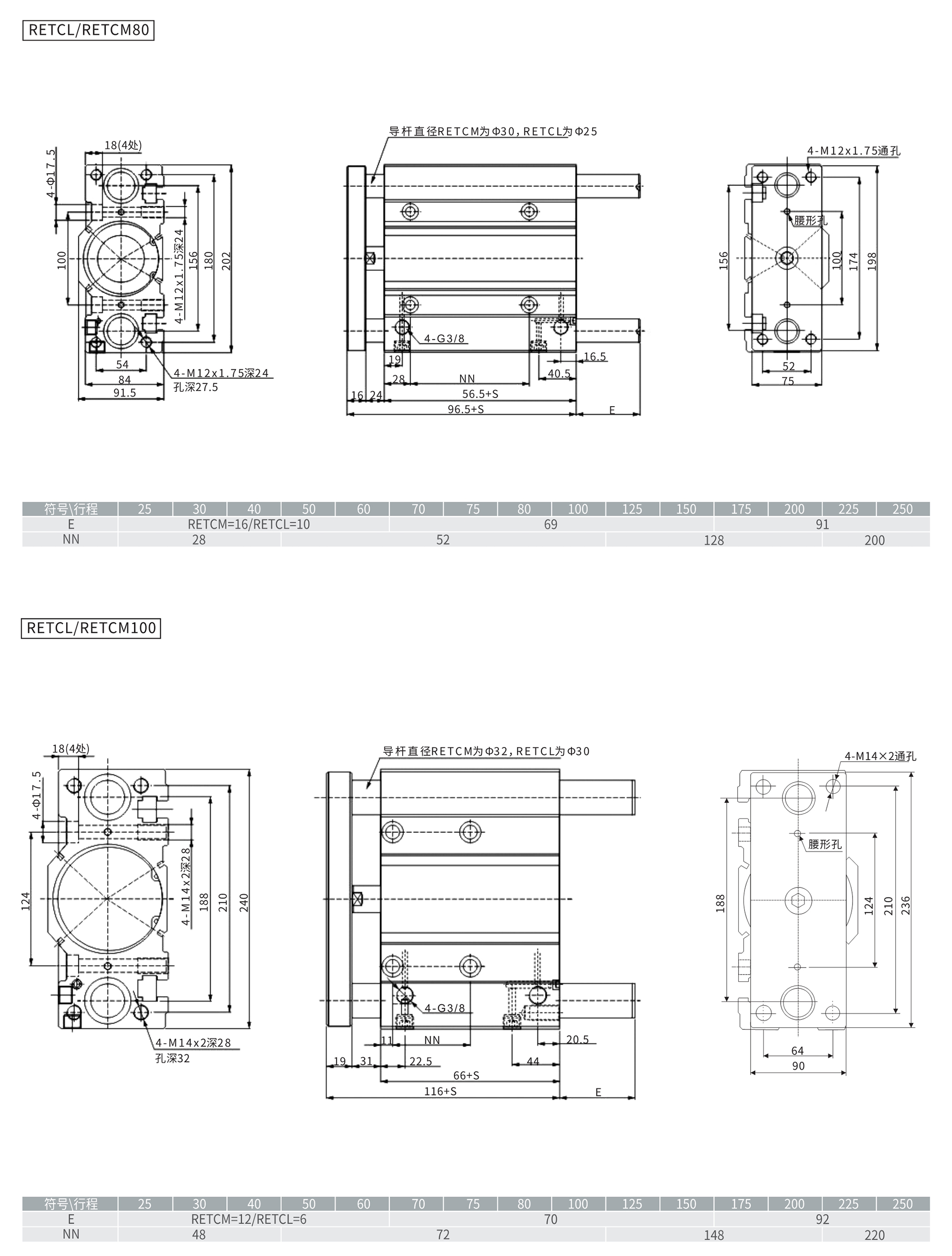 RETCM/RETCL系列三軸氣缸