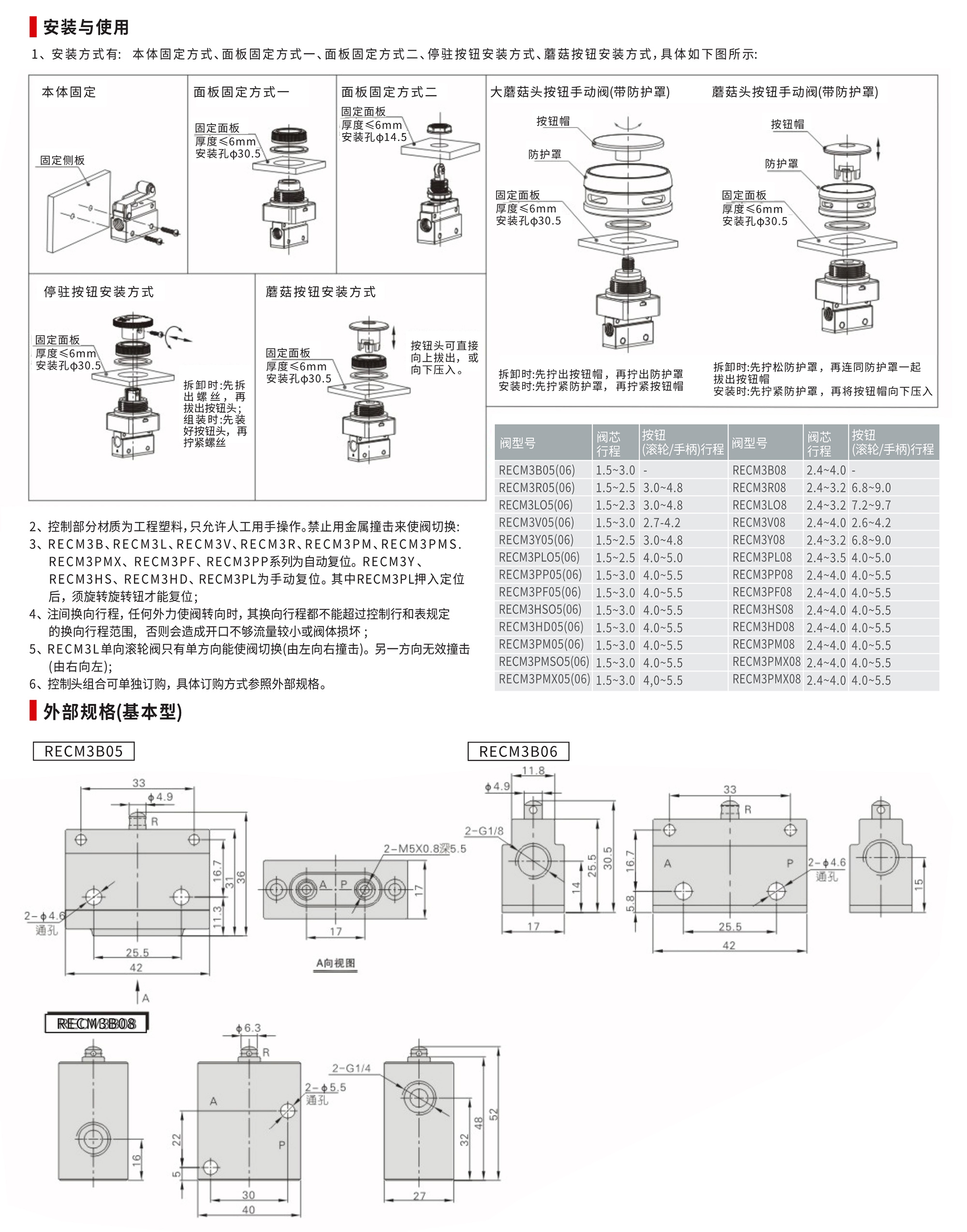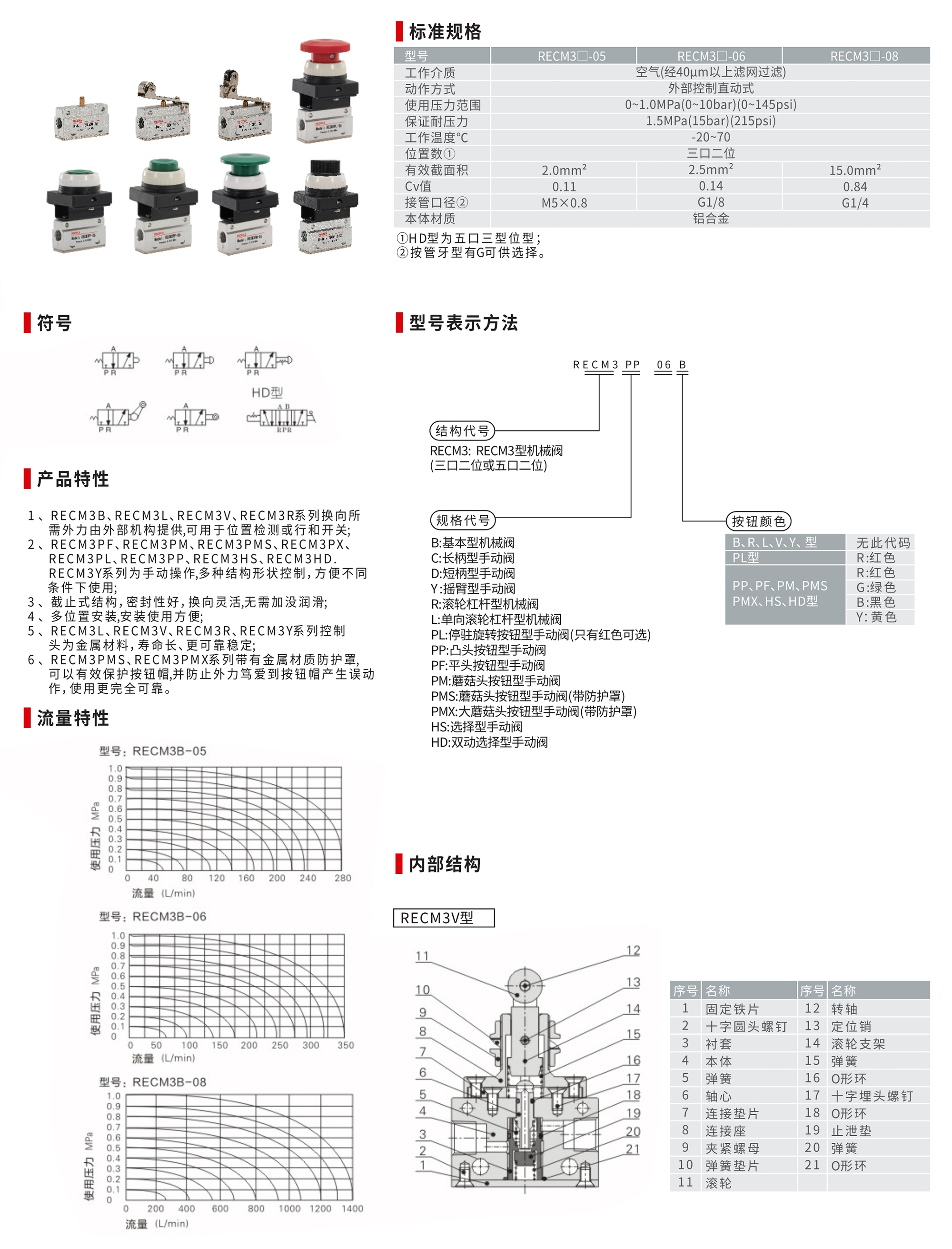 > RECM3系列機(jī)械閥(三口二位、五口三位)