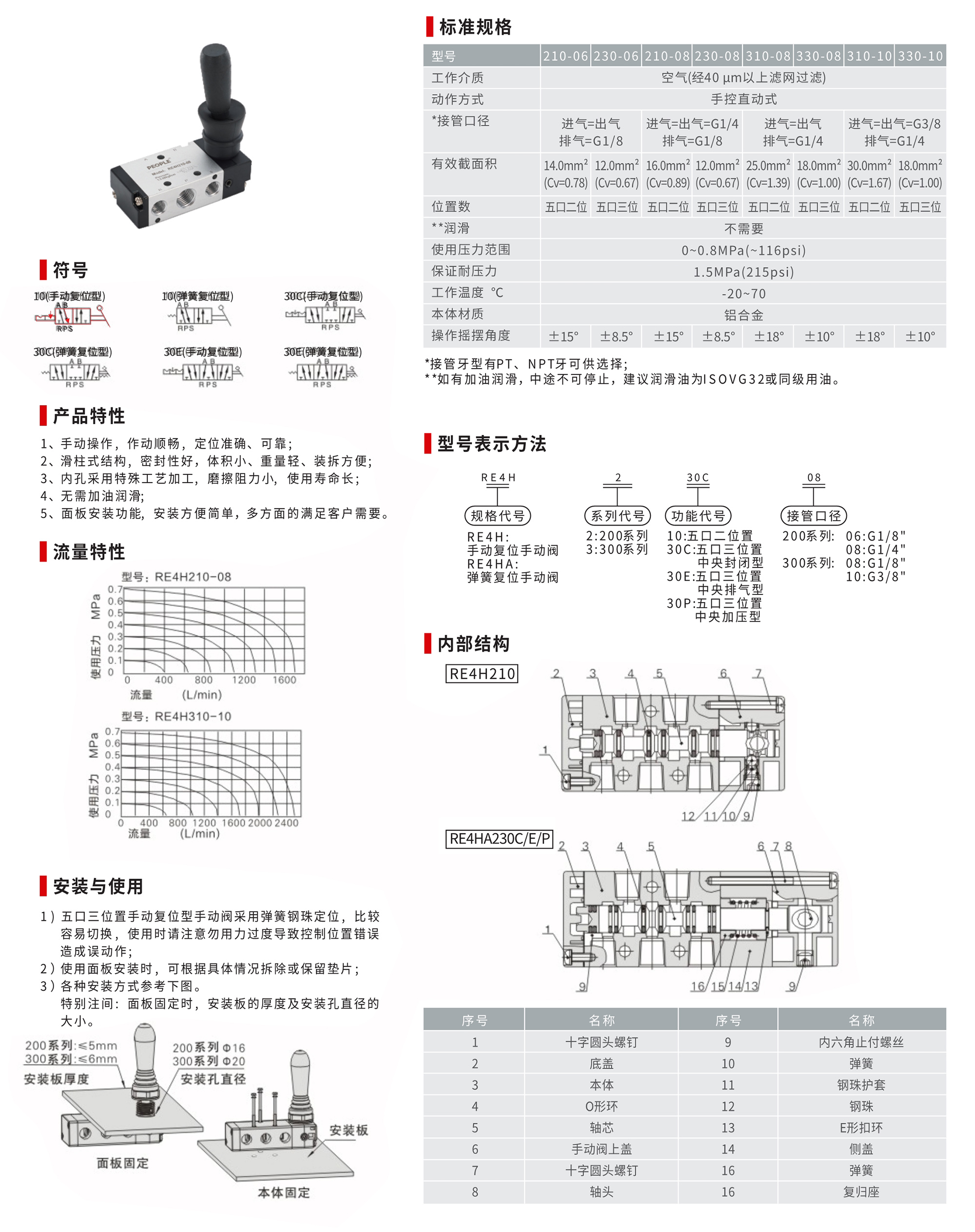 RE4H系列手扳閥(五口二位、五口三位)