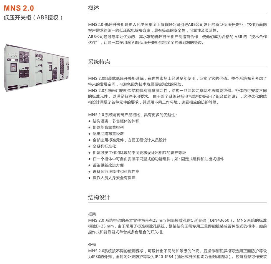首頁 > 產品中心 > 電力運維及其它用戶 > 低壓開關柜 > MNS2.0型低壓成套開關設備