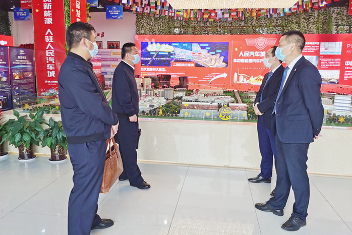 李堅一行先后參觀了人民汽車城營銷中心、汽車交易市場、蔡甸車管分所等地,并詳細(xì)詢問了現(xiàn)階段企業(yè)復(fù)工復(fù)產(chǎn)情況。人民汽車城總經(jīng)理劉志鵬就項目復(fù)工復(fù)產(chǎn)情況作詳細(xì)匯報。