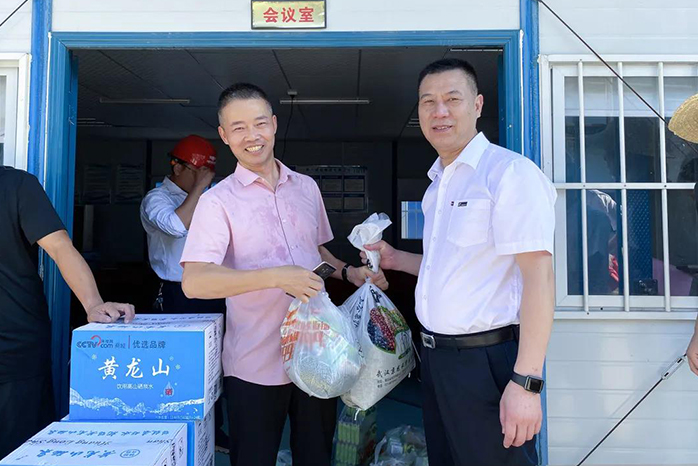 隨后,總經(jīng)理劉志鵬、常務(wù)副總潘文武、辦公室主任劉姣等領(lǐng)導(dǎo)一行前往二期施工現(xiàn)場(chǎng)宣講“818質(zhì)量日”相關(guān)活動(dòng)內(nèi)容,并慰問(wèn)在高溫下仍堅(jiān)守崗位的一線施工人員,親自送去礦泉水、綠豆、風(fēng)油精、人丹等防暑降溫用品。