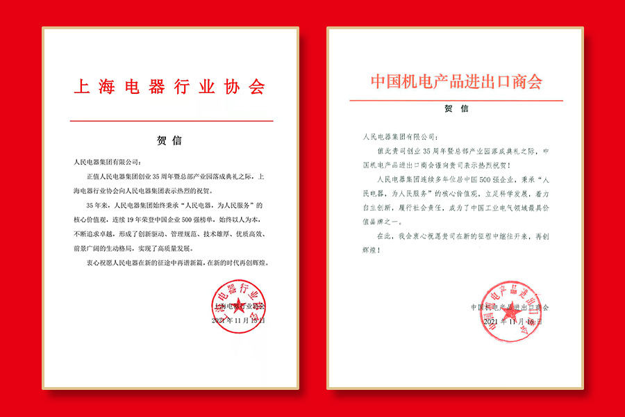 中國企業(yè)聯(lián)合會(huì)、中國企業(yè)家協(xié)會(huì)和中國電器工業(yè)協(xié)會(huì)發(fā)來賀信,在賀信中表示人民電器集團(tuán)始終以人為本,不斷追求卓越,實(shí)現(xiàn)了高質(zhì)量發(fā)展。衷心祝愿人民電器在新的征途中再譜新篇,在新的時(shí)代里再創(chuàng)輝煌。