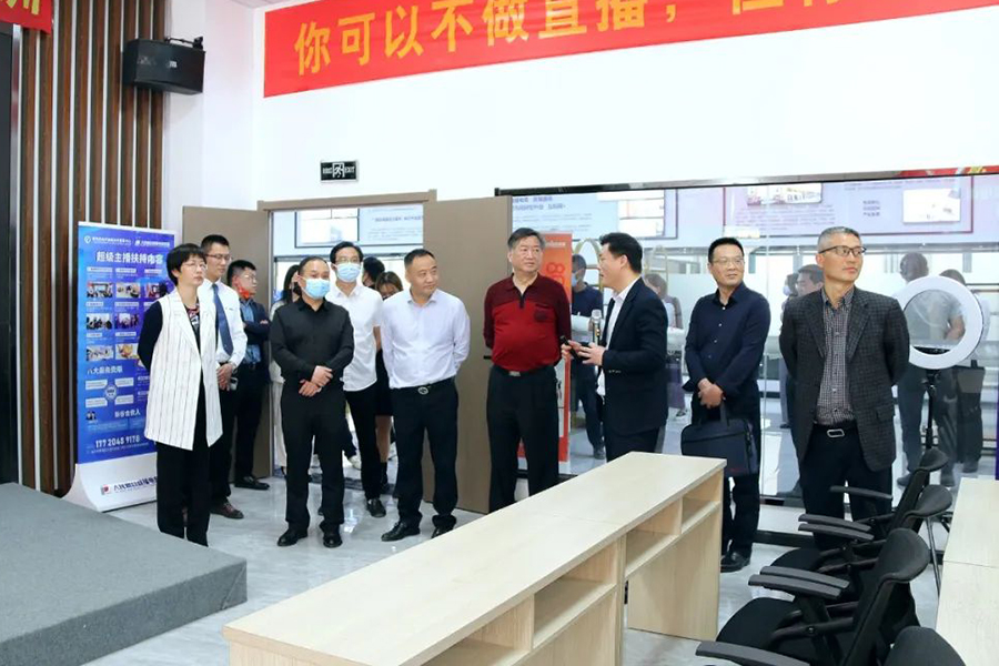 在人民新谷直播電商新城總經(jīng)理劉宇帶領(lǐng)下,兩區(qū)統(tǒng)戰(zhàn)部與新聯(lián)會(huì)領(lǐng)導(dǎo)一行實(shí)地參觀人民新谷直播電商新城選品展廳、商學(xué)院、直播間、倉儲(chǔ)基地等。