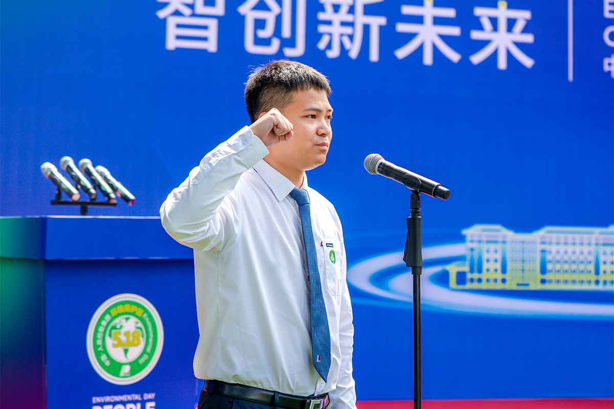 人民電器集團浙江公司采購部經(jīng)理包炳帆帶領大家舉行了環(huán)保宣誓——