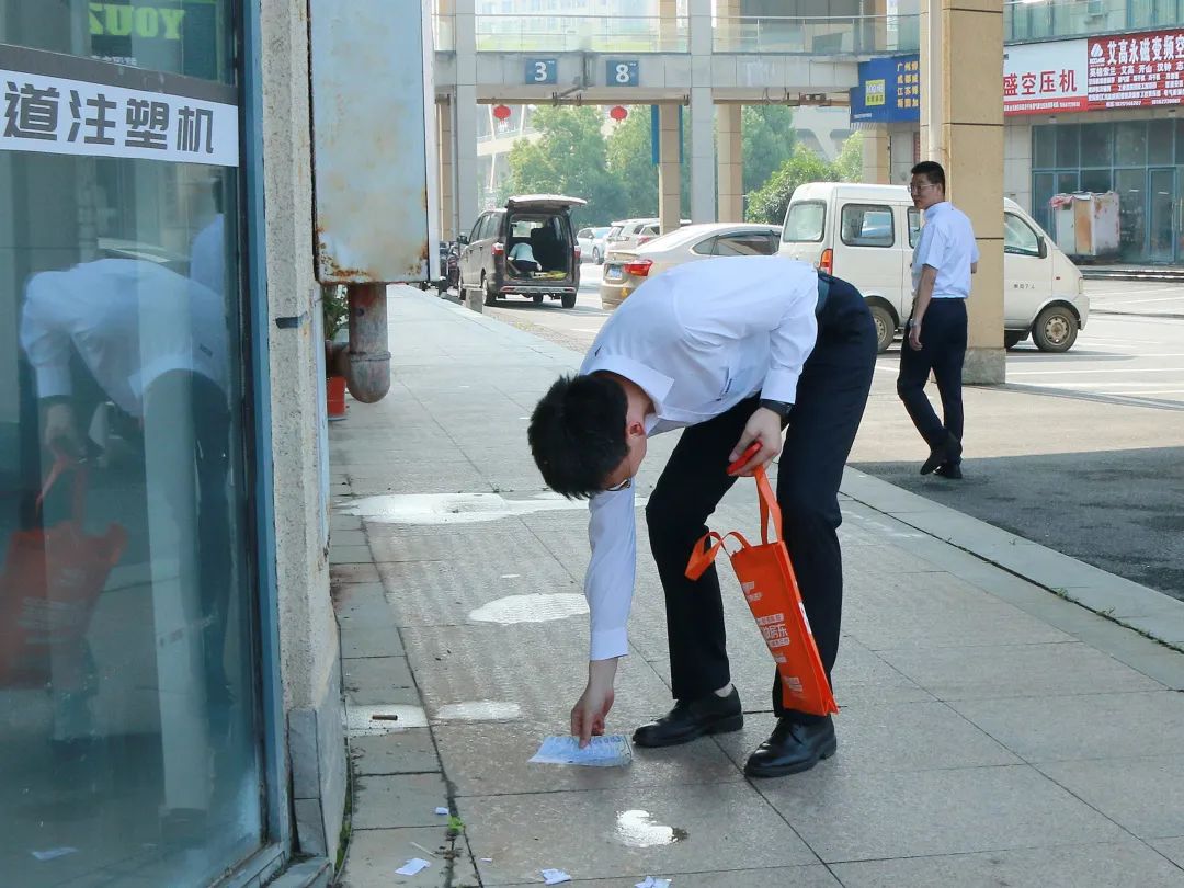 啟動儀式后,人民汽車城(武漢)、人民浩滿(湖北)公司總經(jīng)辦領(lǐng)導(dǎo)及黨員參與市場巡查,撿拾垃圾等公益活動,并自身行動號召大家做環(huán)境保護(hù)的行動派,形成環(huán)保人人參與、人人受益的良性循環(huán)。