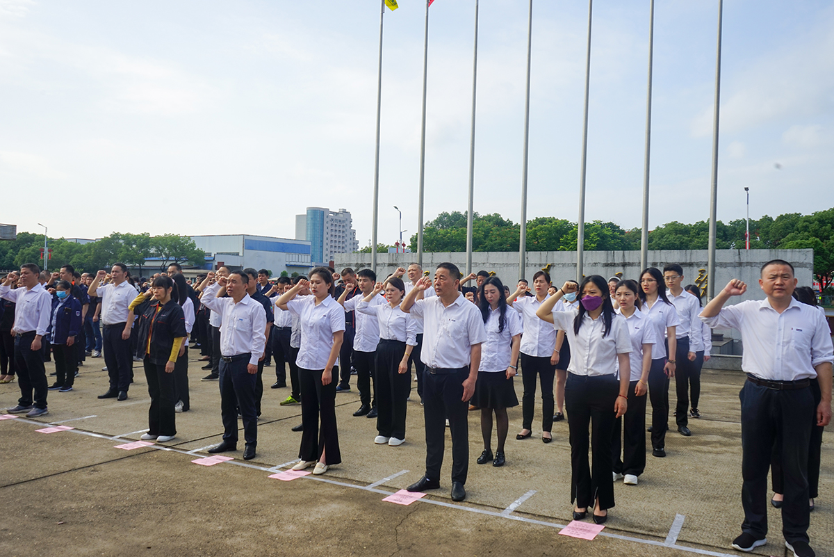在公司副總經(jīng)理明新才的領(lǐng)誓下,全體員工高舉握拳右手,激奮高昂的宣誓環(huán)節(jié),把活動推入了又一個高潮: