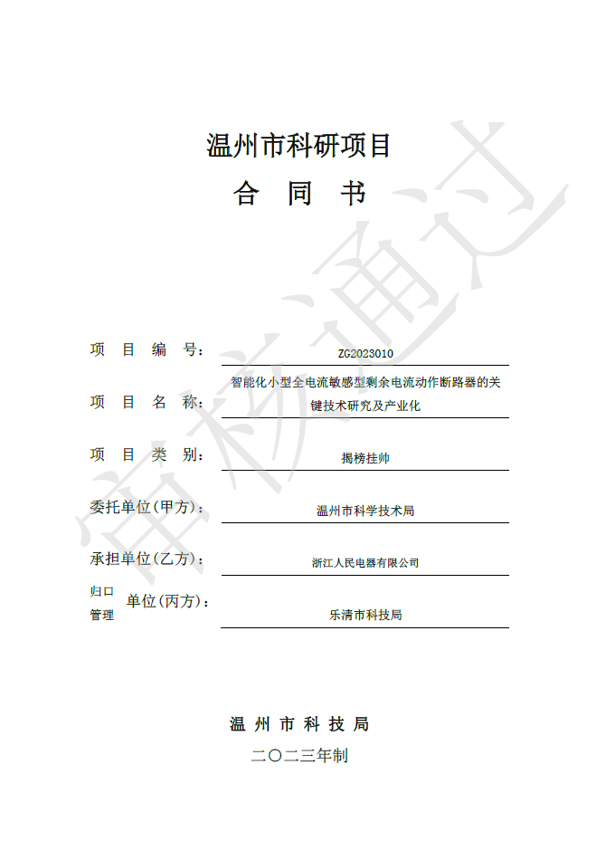 近日,中國·人民電器集團(tuán)浙江公司收到溫州市科學(xué)技術(shù)局印發(fā)的《關(guān)于2023年溫州市重大科技創(chuàng)新攻關(guān)項(xiàng)目立項(xiàng)和下達(dá)相關(guān)補(bǔ)助資金的通知》,這意味著浙江公司揭榜的重大科技項(xiàng)目將正式進(jìn)入具體實(shí)施階段。