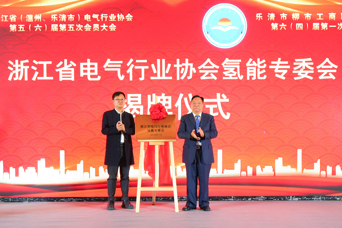 在表彰和授牌環(huán)節(jié),樂清長三角電氣工程師創(chuàng)新中心王巍與鄭元豹共同為“浙江省電氣行業(yè)協(xié)會氫能專委會” 揭牌 。