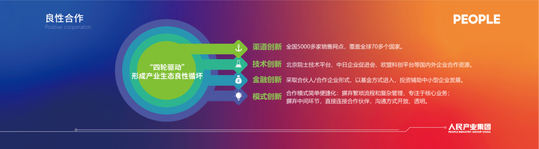 未來,人民產(chǎn)業(yè)集團(tuán)將充分運(yùn)用人民控股集團(tuán)優(yōu)勢(shì),聯(lián)合五大集團(tuán),建立以產(chǎn)業(yè)集團(tuán)為主力平臺(tái)的經(jīng)營生態(tài)環(huán)境,激活“人民5.0”的大數(shù)據(jù)管理平臺(tái),以創(chuàng)新驅(qū)動(dòng)、增強(qiáng)協(xié)同、產(chǎn)品優(yōu)化等三方面加速產(chǎn)業(yè)領(lǐng)域發(fā)展。同時(shí),將不斷整合新資源、新科技、新模式,力主打造可長(zhǎng)久持續(xù)的發(fā)展模式。人民產(chǎn)業(yè)集團(tuán)愿與萬千合作伙伴共生、共贏、共襄盛舉!