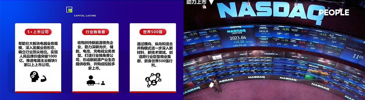 關(guān)于資本上市,人民金控發(fā)揮自身產(chǎn)業(yè)優(yōu)勢(shì),圍繞上下游企業(yè)進(jìn)行整合聯(lián)動(dòng),精心籌備旗下多家公司上市工作,通過投融資服務(wù)體系的構(gòu)建,攜手國(guó)際研究機(jī)構(gòu),助力打造行業(yè)獨(dú)角獸和世界500強(qiáng)企業(yè),以此踐行早日實(shí)現(xiàn)碳達(dá)峰與碳中和的企業(yè)使命。