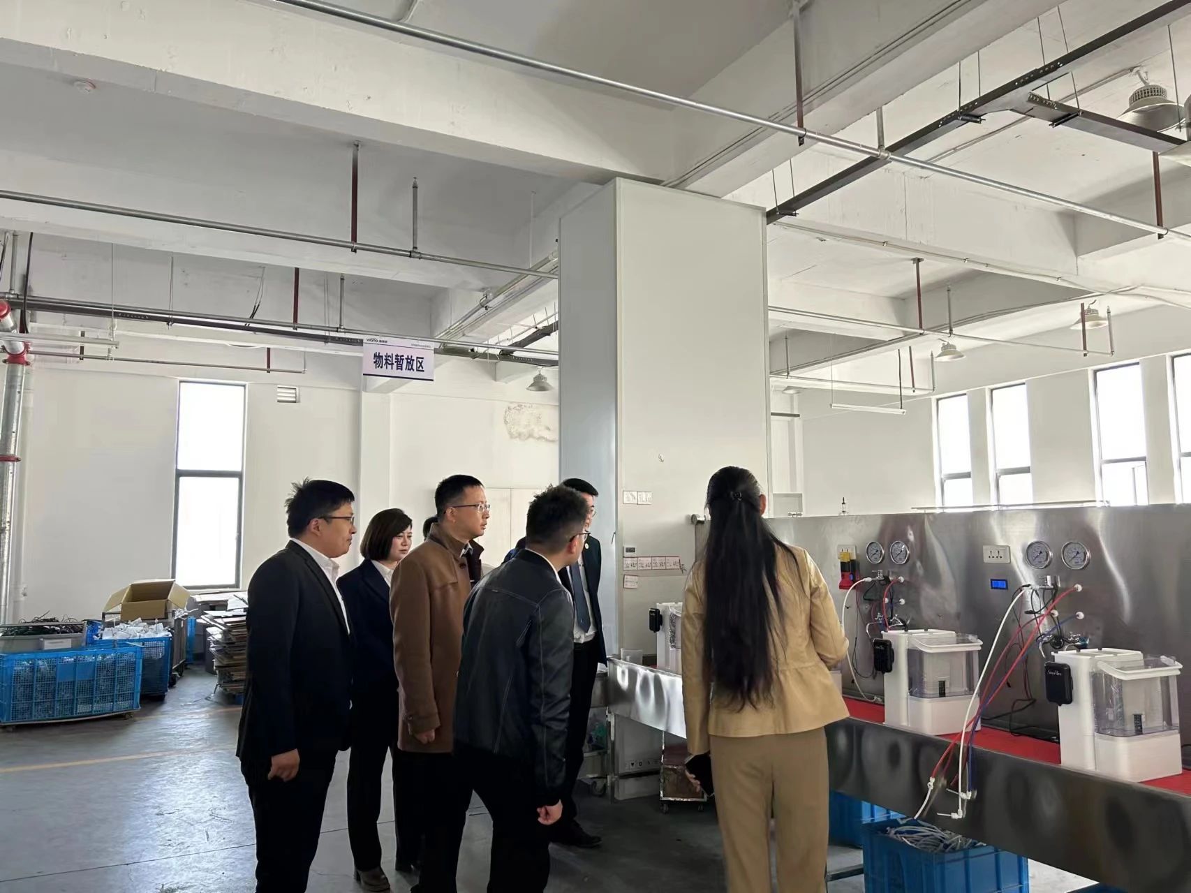 在左銀美總等公司領(lǐng)導(dǎo)的陪同下,宣城現(xiàn)代服務(wù)業(yè)產(chǎn)業(yè)園區(qū)管委會招商局局長常飛參觀人民萬福產(chǎn)業(yè)園時,對人民萬福產(chǎn)業(yè)園的發(fā)展模式表示充分肯定,隨后雙方展開座談交流。