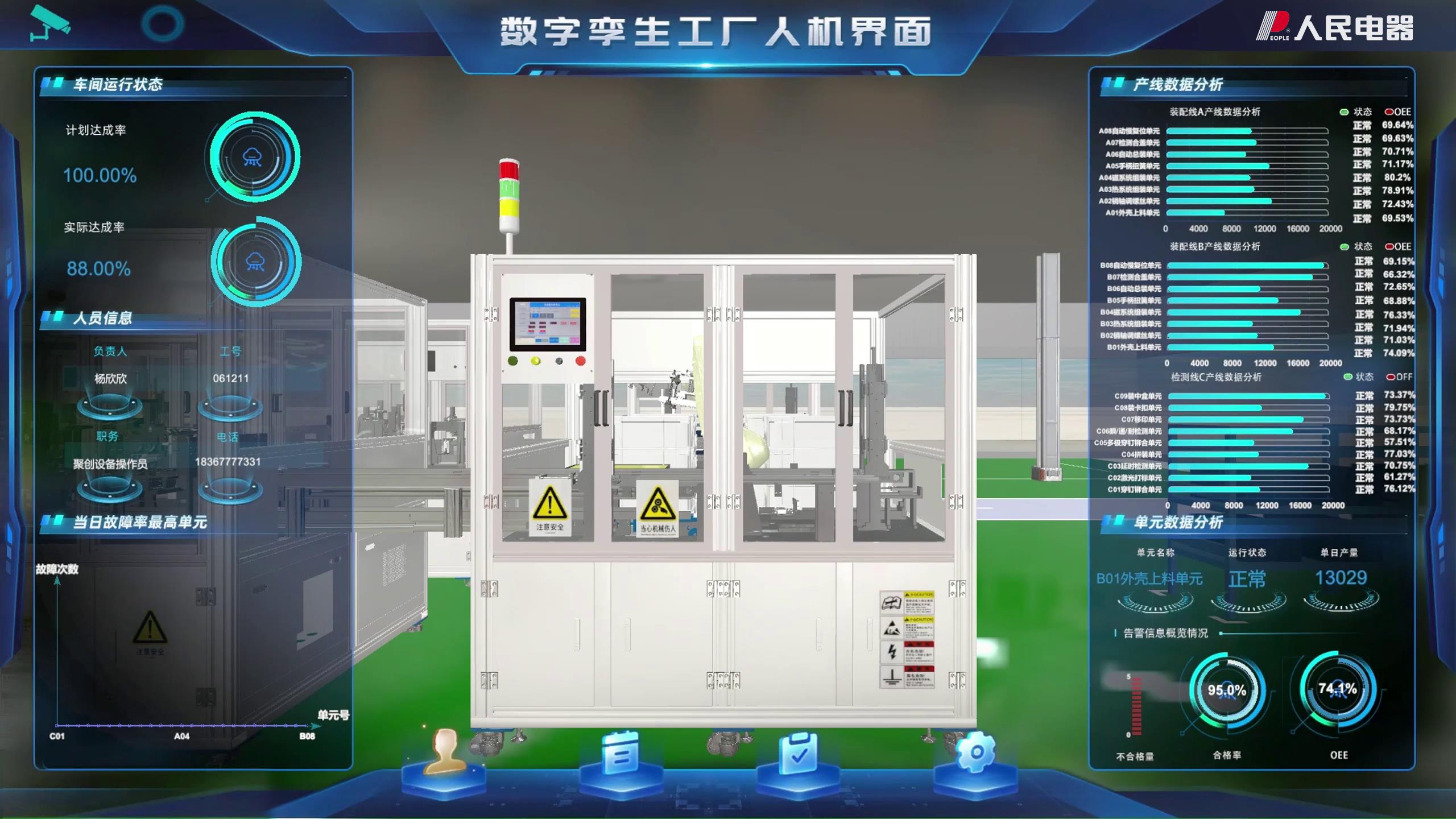 這條低壓斷路器柔性生產(chǎn)線,作為項目的核心成果,被成功應(yīng)用于人民電器智能工廠內(nèi),成為其重要組成部分。該生產(chǎn)線將人工操作與自動化緊密結(jié)合,顯著提升了斷路器制造的效率和可靠性,為智能工廠的高效運(yùn)轉(zhuǎn)提供了有力支撐。同時,通過開發(fā)全尺寸數(shù)字孿生車間系統(tǒng),企業(yè)能夠利用沉浸式虛擬仿真平臺進(jìn)行遠(yuǎn)程監(jiān)控、智能診斷以及故障排除,進(jìn)一步增強(qiáng)了企業(yè)的運(yùn)營管理水平,推動了制造業(yè)的數(shù)字化、智能化轉(zhuǎn)型。
