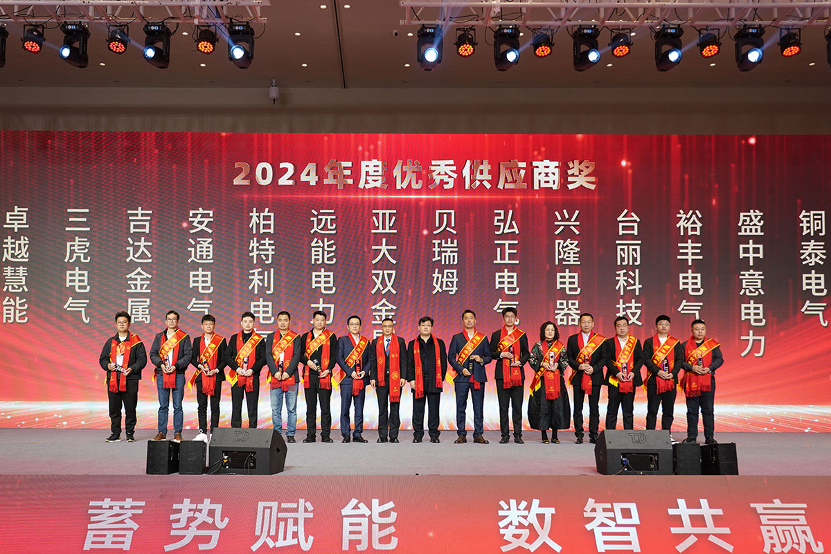 鄭經(jīng)潔向大會致辭。他回顧了2024年人民電器集團在技術(shù)創(chuàng)新、標準引領(lǐng)、市場入圍、智能制造和數(shù)字化轉(zhuǎn)型等方面取得的顯著成績,并展望了2025年的發(fā)展戰(zhàn)略。鄭經(jīng)潔指出,未來人民電器集團將繼續(xù)深化跨界融合,拓展生態(tài)合作,加速從傳統(tǒng)產(chǎn)品銷售向系統(tǒng)集成方案服務(wù)商的轉(zhuǎn)型,推動智能電網(wǎng)、新能源等領(lǐng)域的創(chuàng)新發(fā)展。
