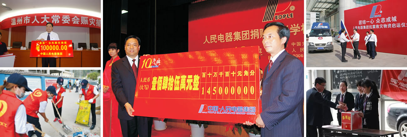 在突發(fā)事件或自然災(zāi)害面前,人民控股以社會責(zé)任為重,多次為抗洪賑災(zāi)、扶貧濟(jì)困等公益活動捐款、捐物,積極參與新農(nóng)村建設(shè)和鄉(xiāng)村振興計劃,出資修建堤塘、橋梁、道路、隧道;資助冰雪災(zāi)害地區(qū),支援地震災(zāi)區(qū),大力支援農(nóng)村教育事業(yè),培養(yǎng)農(nóng)村人才,支援欠發(fā)達(dá)地區(qū)經(jīng)濟(jì)建設(shè),接濟(jì)貧困大學(xué)生。2020年人民集團(tuán)積極響應(yīng)國家共同抗擊新型冠狀病毒肺炎疫情的號召,立即啟動全球采購系統(tǒng),緊急聯(lián)絡(luò)第一批口罩、防護(hù)服、消毒液等應(yīng)急物資,開通綠色通道運送物資,迅速馳援湖北荊門。與此同時,人民集團(tuán)兵分兩路,向樂清市政府捐贈了一批空氣凈化設(shè)備,為一線干部工作環(huán)境提供有力保障。2021年,河南突發(fā)重大水災(zāi),集團(tuán)迅速動員全國九大物流中心,運送物資,馳援鄭州。